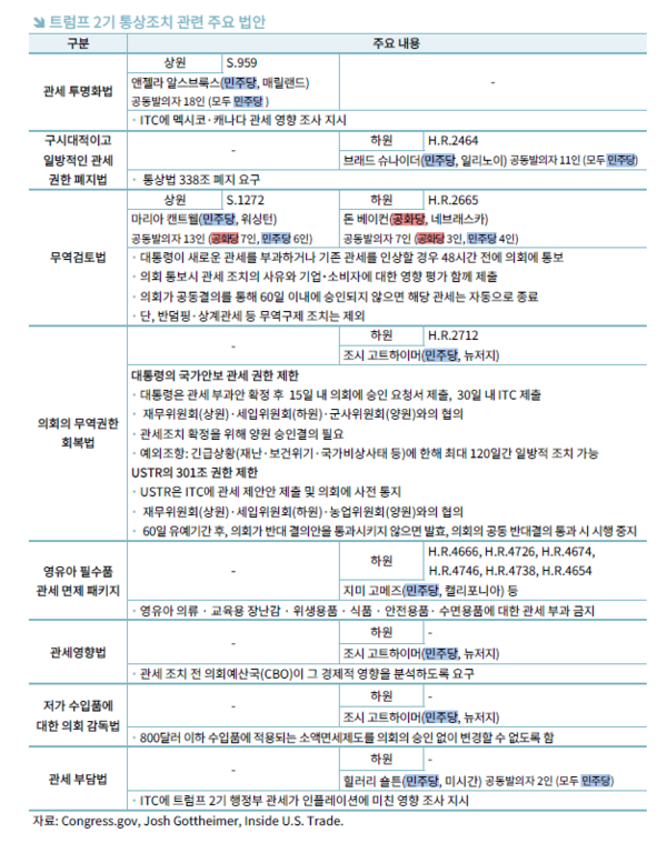 - 美의회, 대통령 관세 권한 견제 법안 발의에도 소득 없어 -