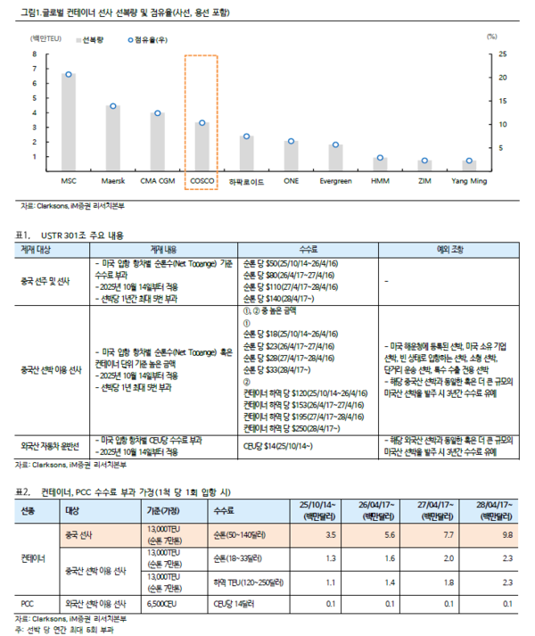 또 중국 선주, 선박, 중국산 선박에 대한 항만 수수료 부과 역시 COSCO의 기조가 변화하지 않는다면 미주 노선 공급 조절로 이어질 가능성은 낮다고 판단된다는 것이다.