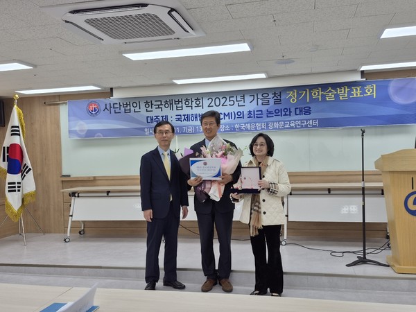 한국해법학회(회장 권성원)는 제5회 한국해법학회 학술대상(해인상)의 수상자로 김인현 명예교수(고려대 법학전문대학원)를 선정하고, 11월 7일(금) 오후 1시 30분 한국해운협회 광화문 교육연구센터에서 진행된 가을철 학술발표회에서 시상했다.