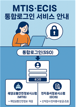 해양교통안전정보시스템(MTIS)과 전자증서정보시스템(ECIS)을 한 번의 인증으로 이용할 수 있는 통합 로그인 방식이 25일(화)부터 시행된다.